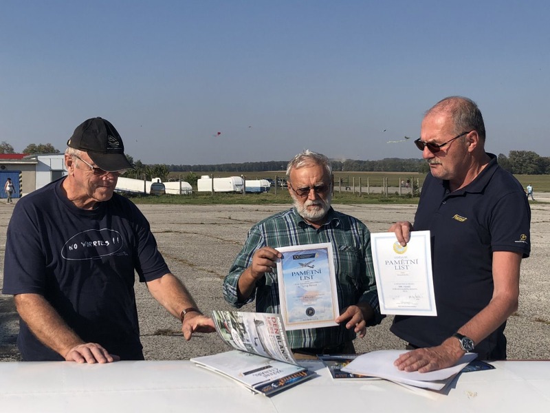 Protože jsme pro tento den nedostali povolení pro přistání na letišti v Prešově, kde společně s aeroklubem sídlí i vojenské vrtulníky, udělalo nám velikou radost, že za námi do Ražňan přijeli i pánové Běluško a Kašík, čili předseda Aeroklubu Prešov a místní pamětník a aktivní modelář. Předali jsme jim proto pamětní listy v Ražňanech a doufáme, že příště to již vyjde. Čas velmi rychle uběhl a asi po dvou hodinách povídání jsme bohužel museli letět dále.