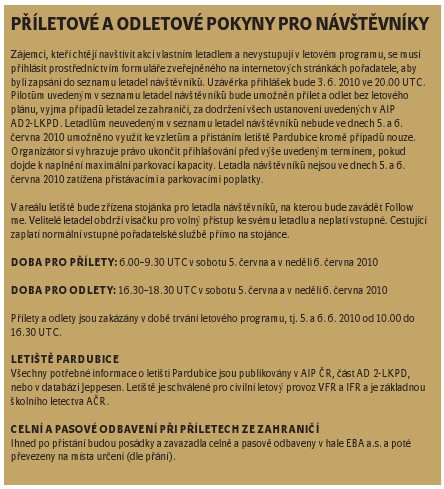 Přestože se pořadatelé snaží zajistit všechny potřebné letouny, je samozřejmé, že právě u historických letadel zůstává do poslední chvíle jistá míra nejistoty nad jejich účastí. Je to samozřejmě dané jednak jejich provozuschopností, jednak i počasím panujícím v době plánovaných příletů. Jistá je účast originálu a repliky letounu Blériot, se kterým Jan Kašpar před sto lety odstartoval počátky aviatiky v Čechách. Domluvený je už také jediný exemplář letounu Curtiss Hawk 75, jedné z nejlepších stíhaček v bitvě o Francii. „V historii československého odboje má zvlášť výsadní postavení, protože na něm naše stíhací esa Peřina a Vašátko dobyli největší počet ze svých vzdušných vítězství nad piloty německé Luftwaffe,“ vysvětluje pořadatel. Měli bychom vidět i další historické perly, jako například Hawker Hurricane, Supermarine Spitfire, North American T6 Texan, Boeing Stearman, De Havilland DH 82 Tiger Moth, Junker JU-52 či Focke Wulf FW 190A.