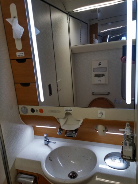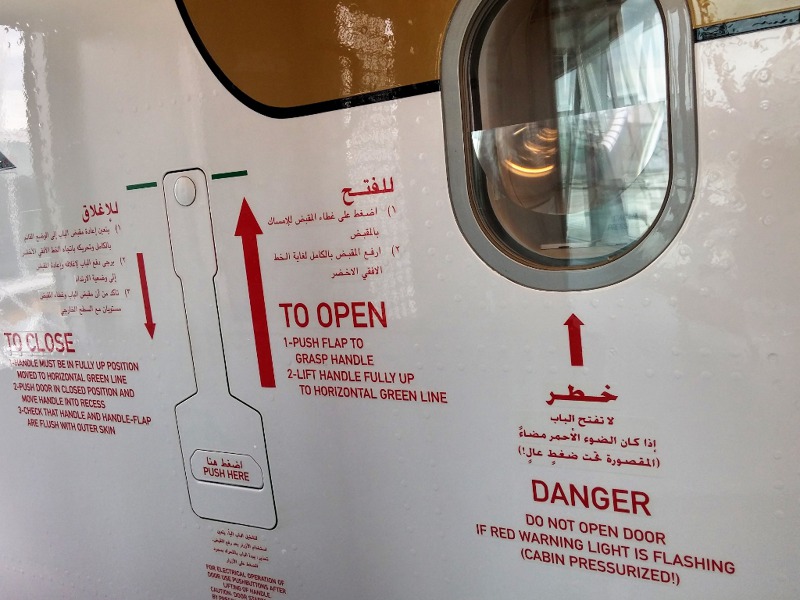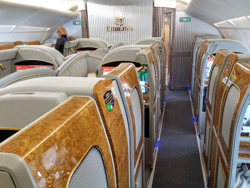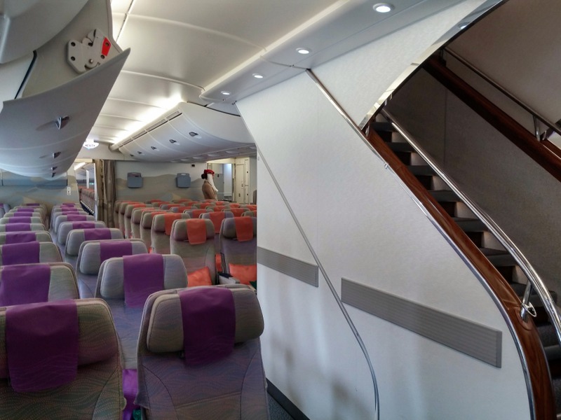 Letadlo, které Emirates na linku nasadila, umožňuje v dané konfiguraci pojmout na palubu 519 pasažérů, z toho 429 jich může letět v economy class na hlavní palubě. Na horní palubě pak je k dispozici 76 míst v bussines class a 14 v první třídě.