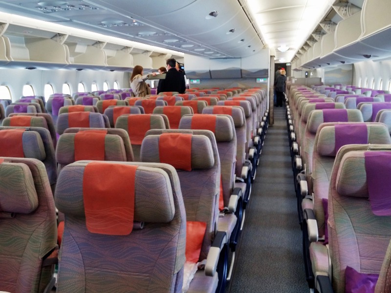 Horní paluba patří luxusu v oblacích, i economy class ale nabídne vcelku pohodlné sezení (i člověk vyššího vzrůstu si může za letu natáhnout nohy) či zábavní systém Ice s digitálními širokoúhlými obrazovkami. V něm lze volit z 2500 kanálů s filmy, TV programy, hudbou a podcasty.