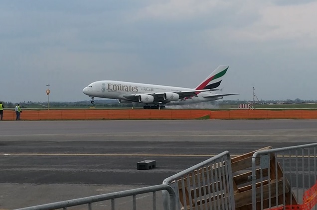 Poprvé v rámci pravidelné linky Dubaj-Praha přistál v neděli 1. května 2016 odpoledne na Letišti Václava Havla největší dopravní letoun světa, Airbus A380 společnosti Emirates Airlines. Na dráhu 12/30 ho posadil po čtyřech a půl hodinách letu z Dubaje jeho český kapitán David Hecl.