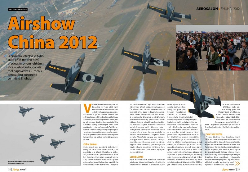 Česká účast byla poměrně bohatá, výstavy se zúčastnilo třináct firem, a to přestože se o účasti ČR rozhodlo bohužel již tradičně na poslední chvíli. I tak byl český pavilon (stan o rozměru 22×5 m) velmi výhodně umístěn na ploše přímo před hlavní halou, kde na něj bylo dobře vidět. Velmi dobrá byla i podpora od českého státu na výstavě – v den zahájení nás přišel podpořit velvyslanec ČR v Číně Libor Sečka a na česko-čínský seminář přijel zase vedoucí ekonomického úseku velvyslanectví Petr Vávra. V rámci česko-čínského semináře jsem přednesl do čínštiny přeloženou přednášku o českém leteckém průmyslu, která vzbudila zájem místních novinářů a dočetl jsem se o ní i v čínském tisku – tedy jediné, čemu jsem v čínském textu rozuměl, bylo moje jméno, protože to nechali v naší abecedě…