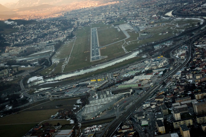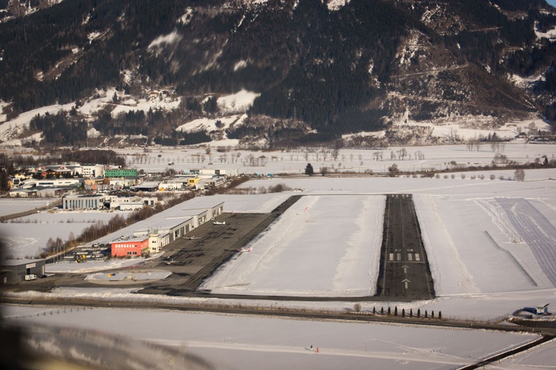 okolí i sjezdovky kolem Kutzbuhlu a na přistání v Innsbrucku.