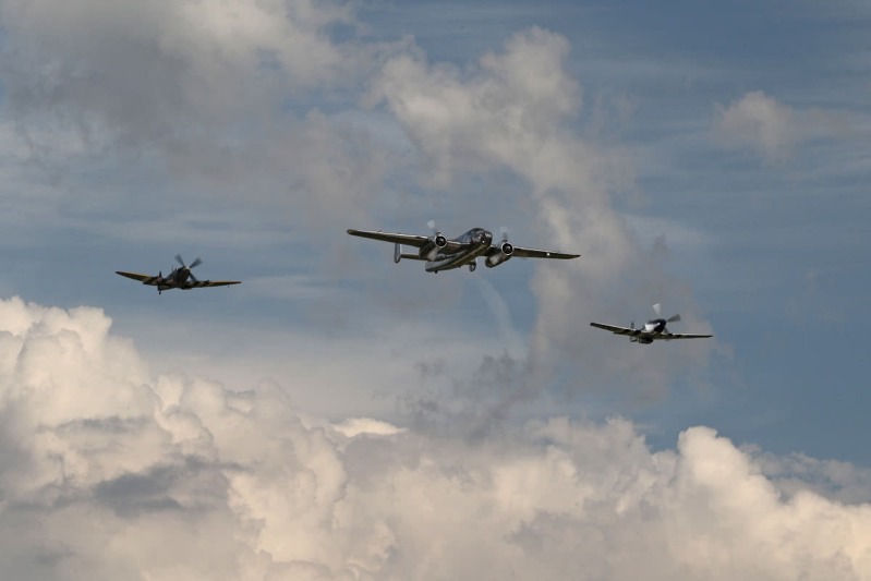 Ve výčtu letadel by se dalo pokračovat a pochopitelně nechyběly takové legendy jako stíhací Spitfire či bombardovací Mitchell. V úžas diváky přiváděla akrobacie na vrtulníku Bo 105, podobně jako předvedení Gripenu českého vojenského letectva.