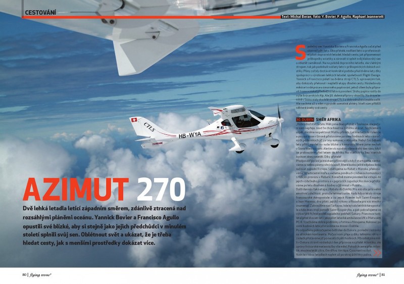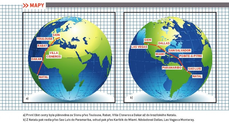 Společný sen Yannicka Boviera a Franciska Agulla začal před více než pěti lety. Oba přátelé, nadšení letci a profesionální piloti dopravních letadel, hledali cestu, jak připomenout průkopníky aviatiky a zároveň si splnit svůj klukovský sen a obletět zeměkouli. Ne na palubě dopravního letadla, ale s lehkým strojem, tak jak podnikali své lety letci v průkopnických dobách aviatiky. Plány začaly dostávat konkrétní podobu před dvěma lety díky spolupráci s výrobcem lehkých letadel, společností Flight Design. Yannick a Francisco poletí se dvěma stroji CTLS, upravenými tak, aby dokázaly překonat i nejdelší etapy dlouhé cesty. Následovaly měsíce tvrdé práce a úmorného papírování, jehož cílem bylo připravit trasu a získat předběžná letová povolení. Stohy papíru rostly do výše švýcarských Alp. Ale 30. dubna přípravy skončily. Na dráze letiště v Sionu stály dva bílé stroje CTLS a dobrodružství mohlo začít. Ale nechme už o něm vyprávět samotné aktéry, kteří nám přiblíží některé úseky své cesty.