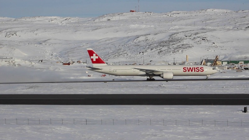 Pracovníci letiště Iqaluit přistání B777 HB-JND natočili. Zdroj: Zdroj: blog.fightradar24.com