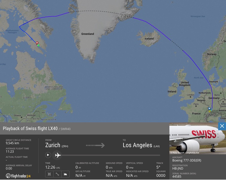 Let Swiss LX40 z Curychu do Los Angeles probíhal normálně až do chvíle, kdy pilotům Boeingu 777-300ER HB-JND nad Ostrovem Prince Charlese v severovýchodní Kanadě, tedy zhruba v polovině cesty, systém ohlásil výpadek levého motoru.