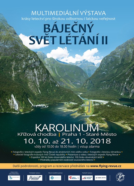 Báječný svět létání II 10. - 21. 10. 2018 Už jen osm dní zbývá do zahájení výstavy leteckých fotografií Báječný svět létání II. Potrvá jen dvanáct dní, tak neváhejte a přijďte se do pražského Karolina potěšit krásnými fotkami světa i Česka.