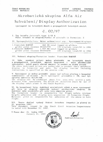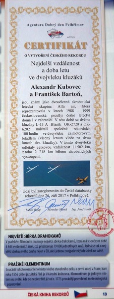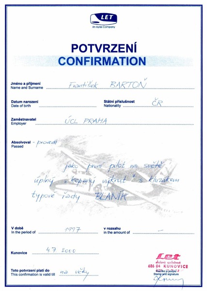 V letech 1988 až 1999 u nás existovala akrobatická skupina, který prováděla skupinovou, zrcadlovou a vstřícnou akrobacii na bezmotorových letadlech L-13 A Blaník. Její piloti František Bartoň a Alexandr Kubovec úspěšně reprezentovali československé a později české sportovní letectví nejen u nás doma, ale i v zahraničí.