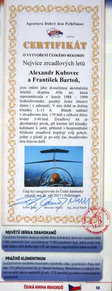 Flying Revue 3/2018 Česká akrobatická skupina Alfa Air proslula akrobacií na letounech L-13 A Blaník. Drží také několik rekordů. Kdo ji tvořil a jaké ojedinělé prvky při vystoupeních prováděla?