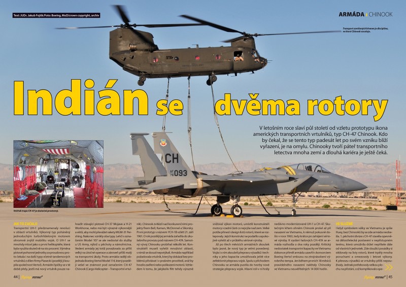 V letošním roce slaví půl století od vzletu prototypu ikona amerických transportních vrtulníků, typ CH-47 Chinook. Kdo by čekal, že se tento typ padesát let po svém vzniku blíží vyřazení, je na omylu. Chinooky tvoří páteř transportního letectva mnoha zemí a dlouhá kariéra je ještě čeká.