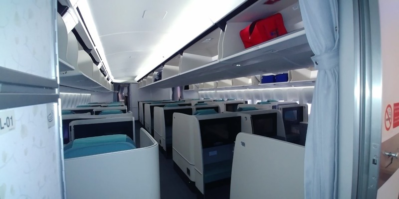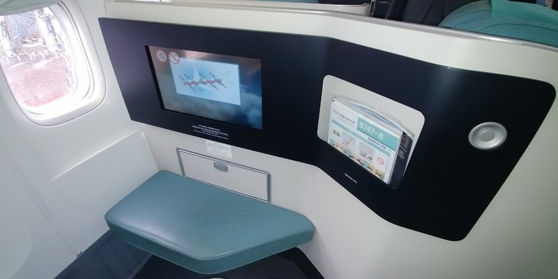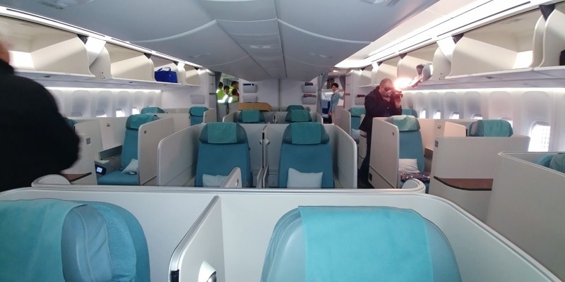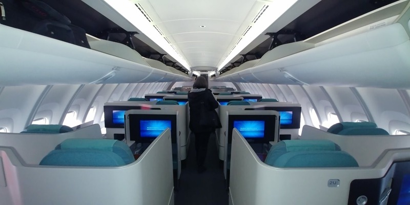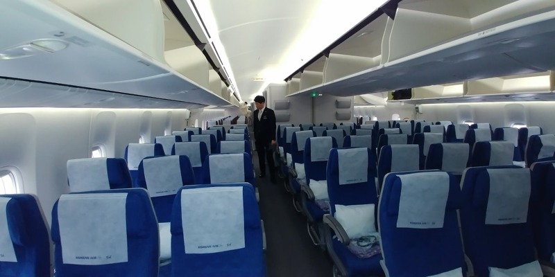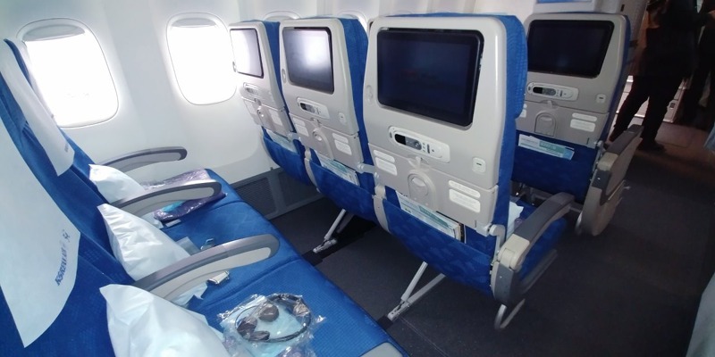 Zbytek hlavní paluby představuje 314 sedadel ekonomické třídy, mezi nimiž jsou větší podélné rozestupy, než znají letečtí cestující z letadel na středních tratích. Interiér působí velice příjemně, za letu by měl být letoun v kabině pro cestující výrazně tišší, než předchozí typy B747. Malé "i" v názvu označuje verzi pro cestující (Intercontinental), cargo verze pak má za osmičkou písmeno "F" (Freighter). První přílet B747-8i Korean Air 1. července 2016 byl zároveň premiérou pasažérské verze na českém území. Během zimní sezóny je linka mezi Prahou a Soulem operována letouny Boeing 787-9 Dreamliner s kapacitou 269 míst.