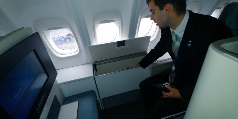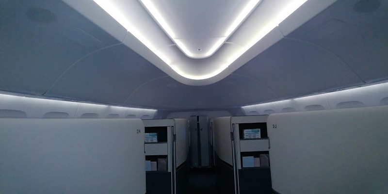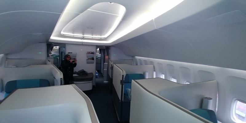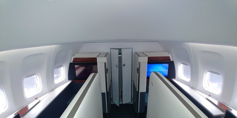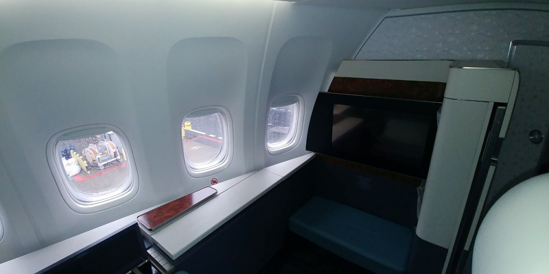 B747-8i do Prahy létá v konfiguraci s kapacitou 368 míst ve třech cestovních třídách. V přední části hlavní paluby se nachází oddělená část se šesti oddělenými prostory Kosmo Suite pro nejmovitější klientelu. Na hlavní palubě se nachází 26 míst Prestige Suite, dalších 22 míst Prestige Suite nabízí horní paluba. Cestující v Prestige Suite mají k dispozici polohovatelná sedadla, která lze rozložit až do podoby lůžka.