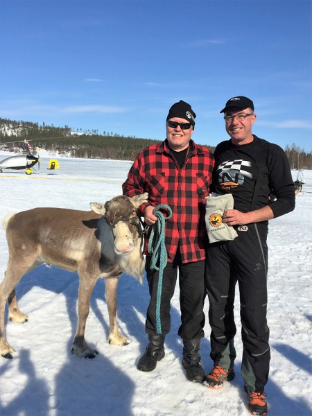 Náhodou (nebo cíleně) se seznamuji s Rogerem. Ten létá na našem paramotoru Nirvana Rodeo a dělá sobí klobásky, sušené maso a jiné dobroty. Ročně zpracuje až tisíc těchto zvířat. Symbolicky se tedy fotíme s místním sobem Františkem. Ten necítí žádné ohrožení a statečně s námi pózuje.