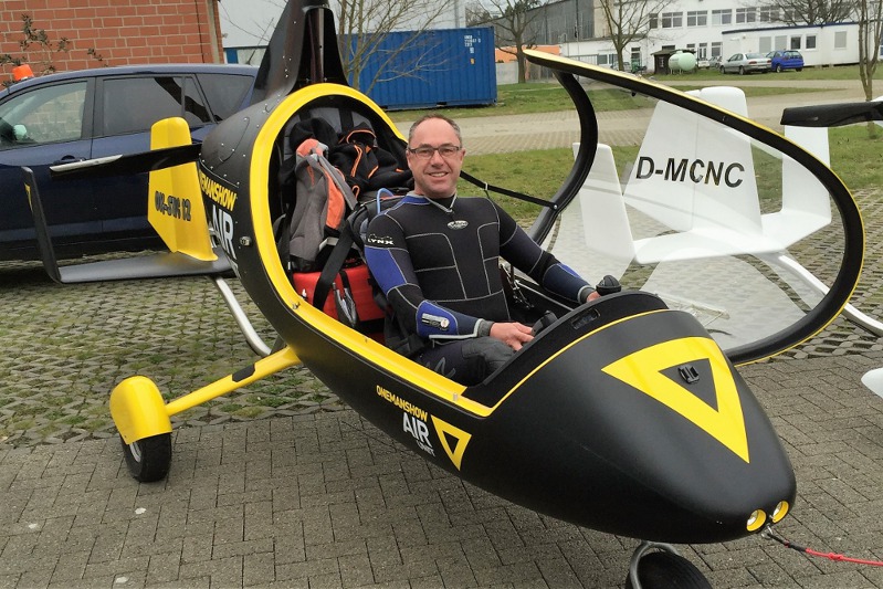 Cestou se stavuji v Hildesheimu v Autogyru, u našeho dvorního dodavatele vírníků, a nemůžu odolat nabídce zalétat si tu v předváděcím slovenském ultralightu Shark, který tu německým zákazníkům nabízí Thomase Kiggen. Rychlost a ovladatelnost Sharku je ohromující, ale my paramotoráři vyměníme rychlost postupu za výhled a odolnost vůči nepřízním počasí.