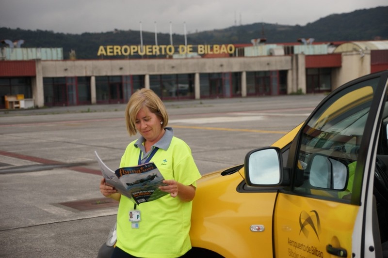 Pracovnice handlingu na letišti Bilbao, Španělsko, říjen 2016