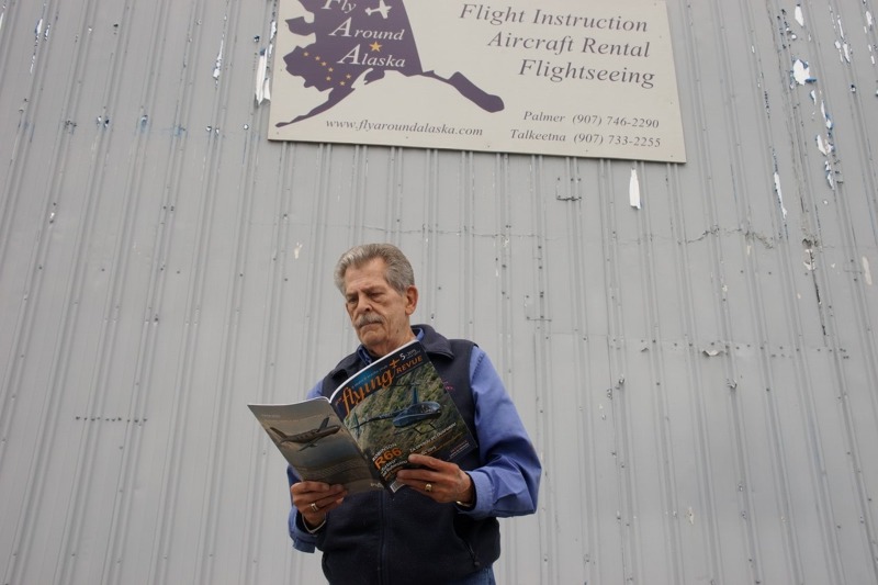 Šéf letecké školy Fly Around Alaska, Palmer, Aljaška, USA, srpen 2016