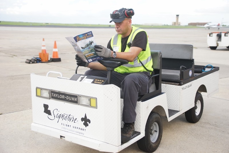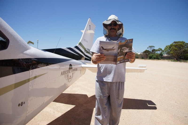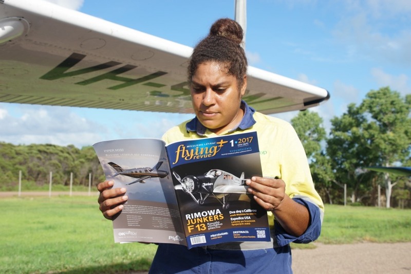 Letecký mechanik v australském Darwinu zaujatě studuje Flying Revue.
