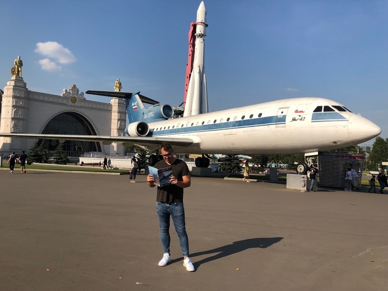 Dmitrij Jurin vzal Flying Revue na výlet do Moskvy. Zde v blízkosti Jak-42 na Výstavě úspěchů národního hospodářství. Foto: Archiv Dmitrije Jurina