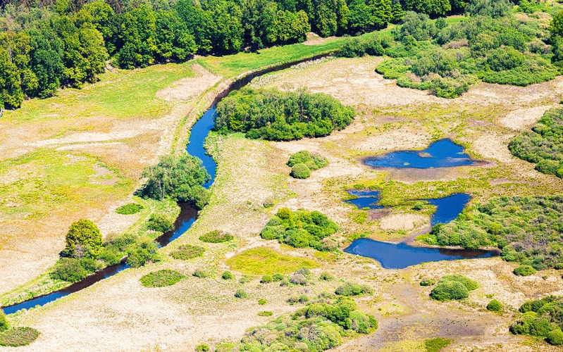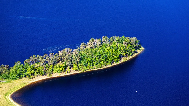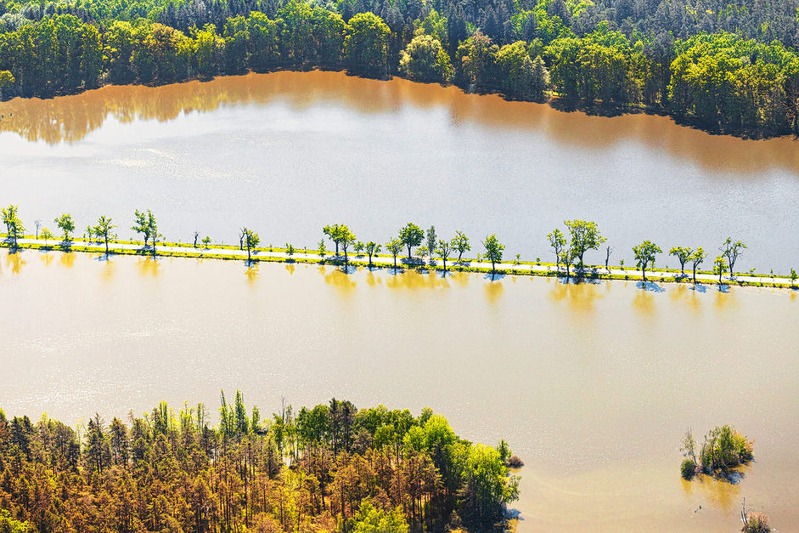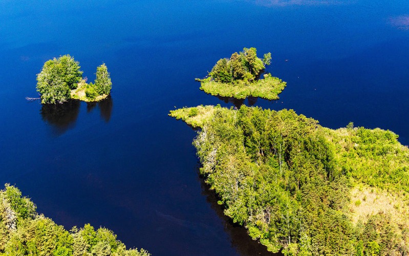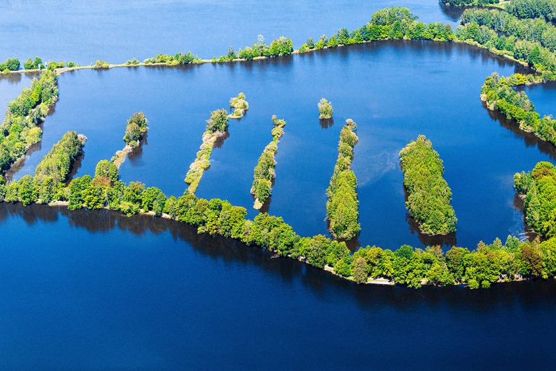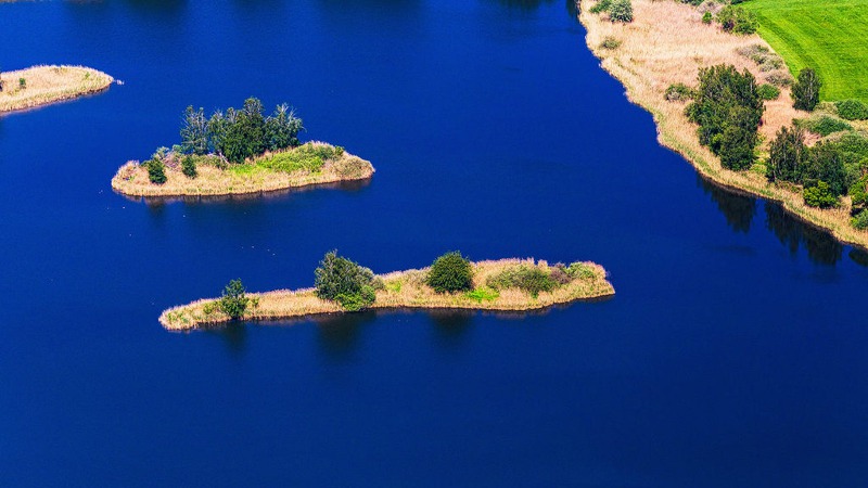 Rybníky na Třeboňsku jsou z výšky fascinující. Toto jsou ostrůvky na jednom z nich. Foto: Tomáš Vocelka
