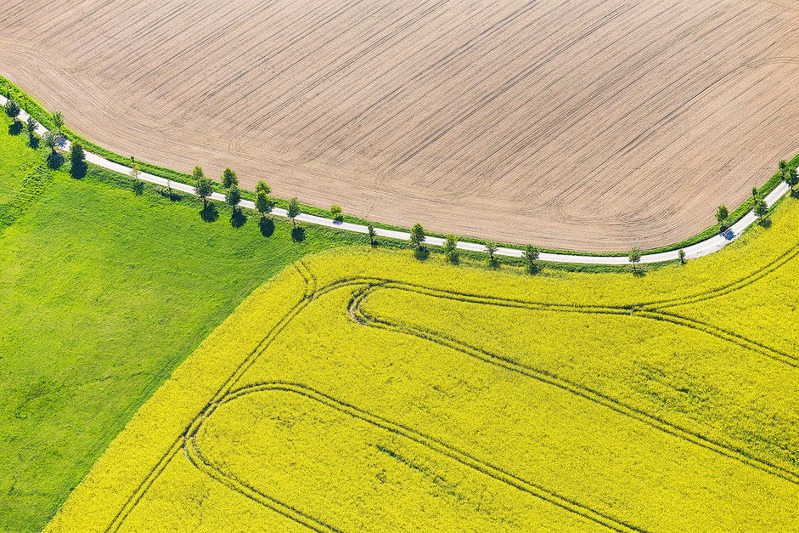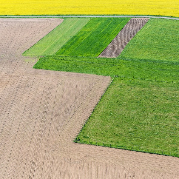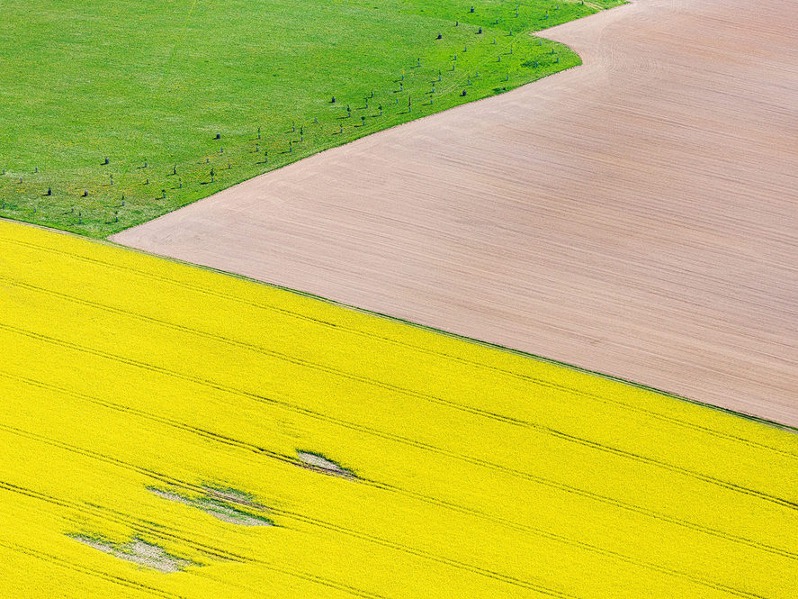 Jarní pole vytvářejí zajímavé geometrické kompozice v krajině. Foto: Tomáš Vocelka