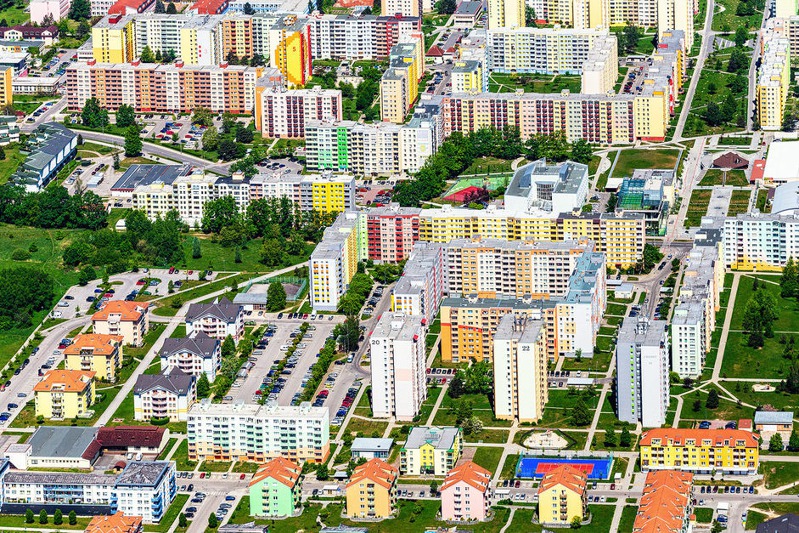 Obrovské sídliště Máj v Českých Budějovicích vypadá z výšky jako kostky ze stavebnice. Foto: Tomáš Vocelka