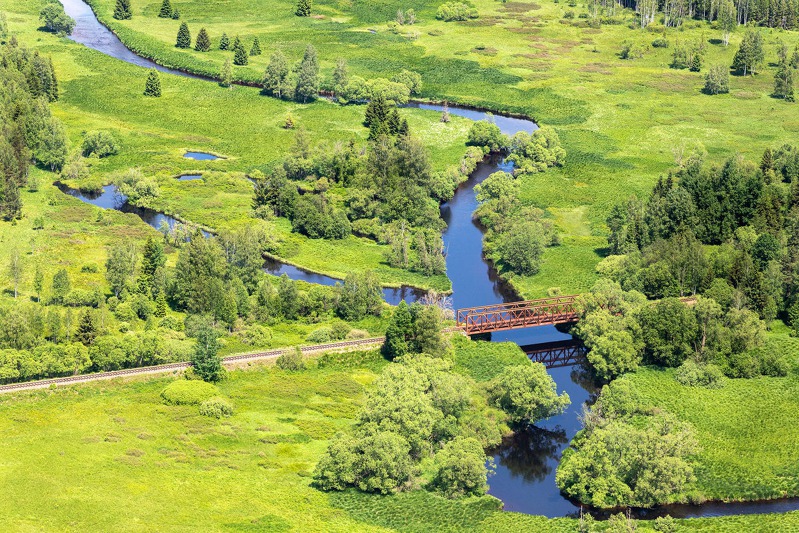 Železniční most u Dobré na Šumavě. Teplá Vltava, pramenící nad Kvildou, se tudy blíží k soutoku se Studenou Vltavou. Foto: Tomáš Vocelka, Aktuálně.cz