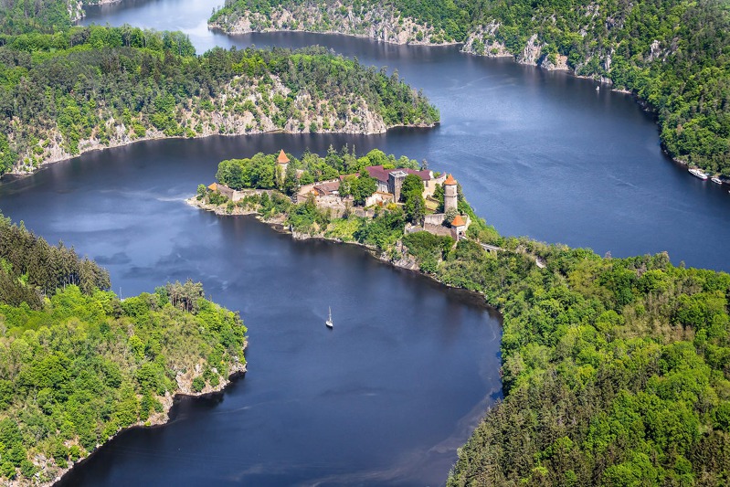 Soutok Vltavy a Otavy u hradu Zvíkov. Foto: Tomáš Vocelka, Aktuálně.cz