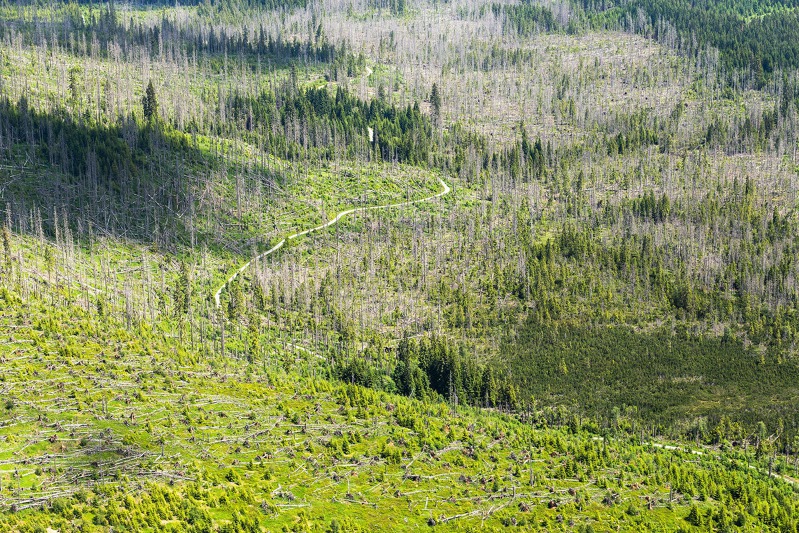 je z výšky úžasný pohled. Od kůrovcem poničených lesů u pramenů
