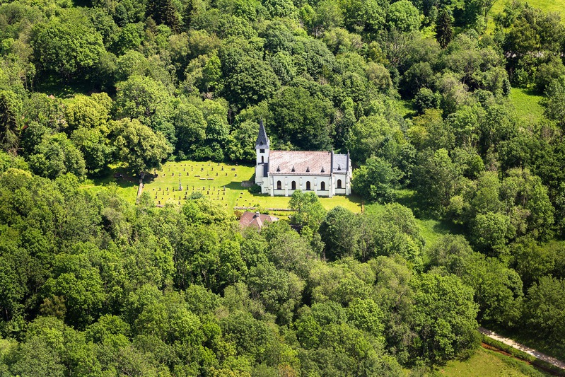 Kostel sv. Jana Nepomuckého v bývalé obci Zvonková, kousek od Lipenské přehrady. Zdevastovaný kostel byl obnoven teprve před pár lety. Foto: Tomáš Vocelka, Aktuálně.cz