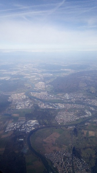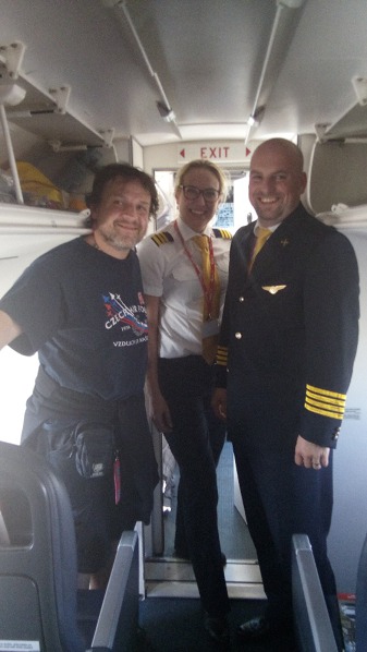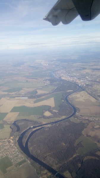 Připadali jsme si jako naši letci, vracející se po několika letech v Anglii zpět do vlasti. Vlastně jsme přilétali možná i podobnou trasou, kdo ví? Dychtivě jsme hleděli skrz okénka a snažili se identifikovat místa o pět a půl kilometrů níže. Na obloze bylo jen pár mráčků, tak to šlo vcelku dobře. Zasněžená pohoří na obzoru, to musí být Krušné hory! Támhle pod námi, to vypadá jako Kynžvart! A támhle se objevují první známé komíny, zvěstující přibližující se Chomutovsko a Mostecko...