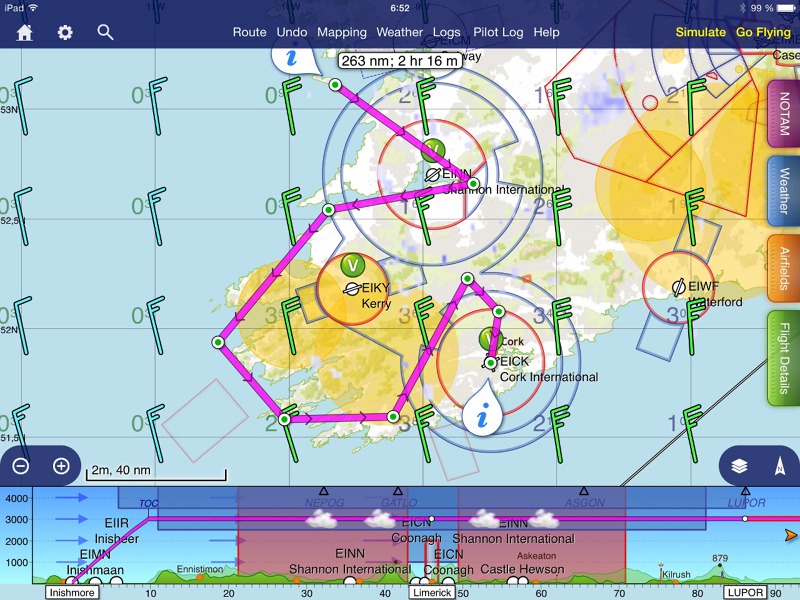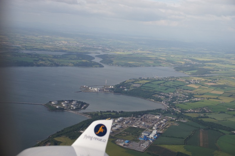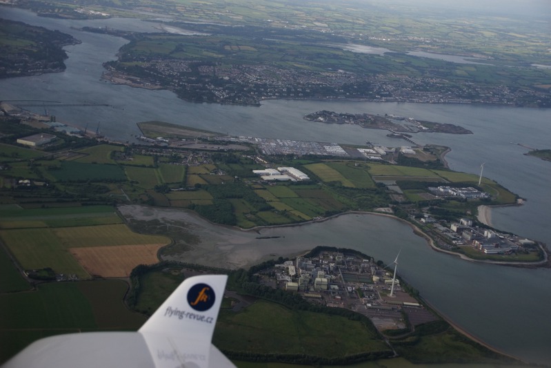Tady jsem se na rozdíl od Colmaru setkal s velmi ochotným a vstřícným personálem, vlastně člověkem z místního aeroklubu. Ráno mě z hotelu zavezl na letiště, pomohl mi zařídit letový plán a ještě mi pomohl s benzínem. Odlet byl malinko komplikovanější, protože letiště Cork je hodně vytížené výcvikem i dopravním provozem. Výjezd ze stojánky pro malá letadla je jeden a je úzký, když jsem čekal na povolení vstupu na dráhu už asi 10 minut, tak tam potřebovala z dráhy zahnout Cessna. Musel jsem se otočit, vracet a opět vracet – trochu chaosu a hlavně ztracený čas na našich kamerách…