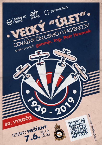 Mise Velký úlet - vzpomínkový let Czech Spitfire Club si v pátek 7. června 2019 připomene vzpomínkovým letem odvážný čin osmi pilotů, kteří se v roce 1939 postavili nacistům a uletěli se svými letouny z území nově vzniklého Slovenského štátu do Polska. Zde získali azyl a postupně se stali příslušníky polského letectva. V něm bojovali na začátku druhé světové války.