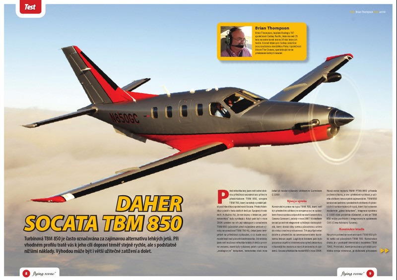 Před několika lety jsem měl velmi dobrou příležitost seznámit se s přímým předchůdcem TBM 850, strojem TBM 700, který byl tehdy vyráběn ještě pod hlavičkou společnosti Socata. Přelet Atlantiku tehdy vyústil v řadu dalších letů po Spojených státech. A dlužno říci, že mé dojmy z létání se „sedmistovkou“ byly vynikající. Když pak byl v roce 2006 uveden na trh její nástupce s označením TBM 850 (původně před rozjezdem sériové výroby označovaná TBM 700 N) čekal jsem netrpělivě na příležitost vyzkoušet, o co bude nový model lepší, než původní sedmistovka. Od té doby jsem měl možnost několika krátkých letů s prvními verzemi, které byly vybaveny ještě v principu „analogovým“ kokpitem, tentokráte však mne čekal již model vybavený oblíbeným Garminem G 1000.