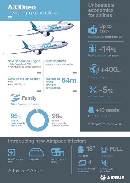 Psal se rok 2014 a evropský výrobce dopravních letounů Airbus dne 14. 7. na aerosalónu v anglickém Farnborough oznámil začátek vývoje nového člena „rodiny“ v Toulouse vyráběných letadel. Vcelku logicky se sáhlo k omlazení úspěšného dvoumotorového letounu Airbus A330 (m.j. létajícího i u našich ČSA) tak, aby se zásadním způsobem pro letecké dopravce zlepšily jeho výkony a stále byl atraktivním strojem pro obměnu jejich flotil. Ostatně řada letounů Airbus s označením neo již delší dobu létá a jejich provozovatelé si pochvalují mnohá vylepšení, zejména sníženou spotřebu paliva.
