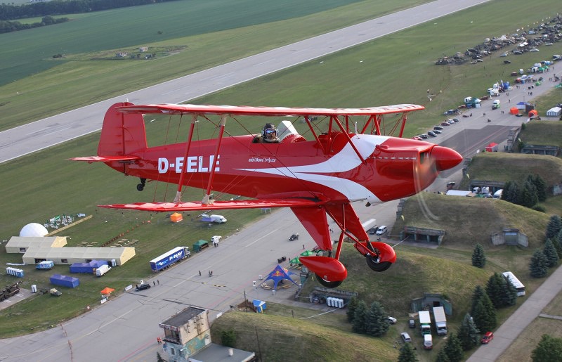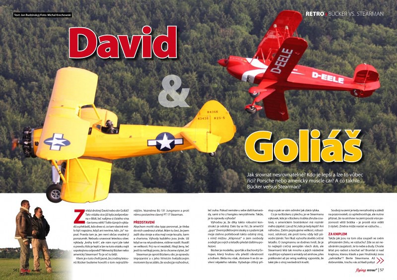 Stearman je oproti Bückeru obr, je opravdu impozantní a s jeho hřmícím hvězdicovým motorem by se zdálo, že souboj je rozhodnut, David & 56 | Text: Jan Rudzinskyj/Foto: Michal Krechowski Jak srovnat nesrovnatelné? Kdo je lepší a lze to vůbec říci? Porsche nebo americký muscle car? A co takhle… Bücker versus Stearman? leč ouha. Pokud nemáte u sebe další kamarády, sami si ho z hangáru nevytáhnete. Takže, je to opravdu výhoda?