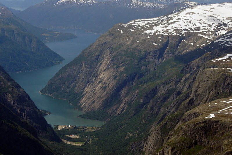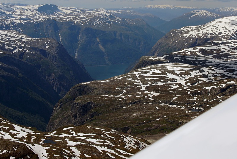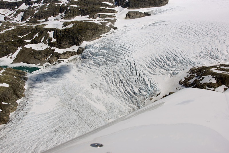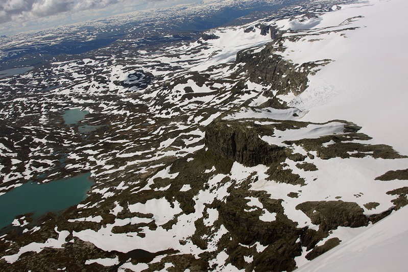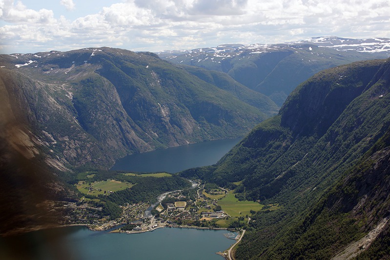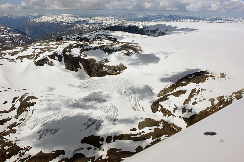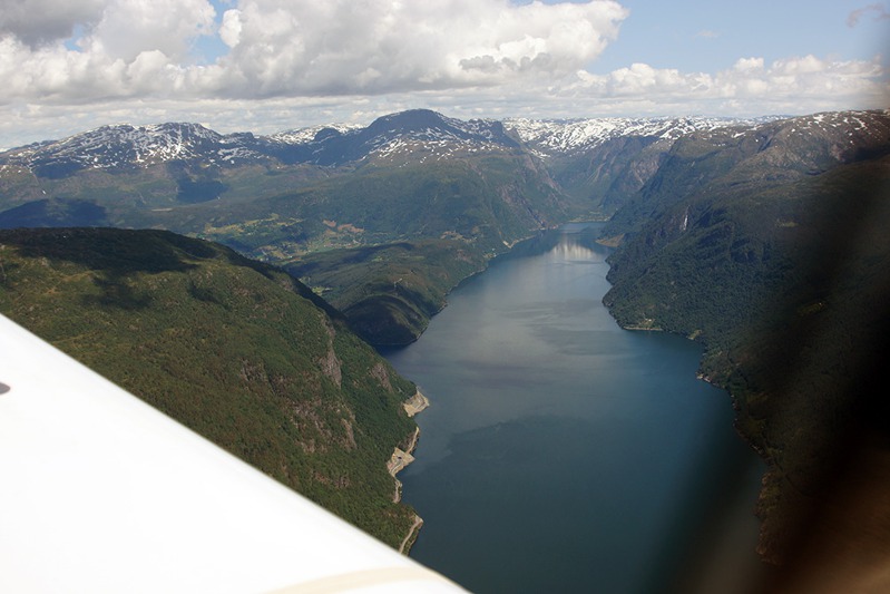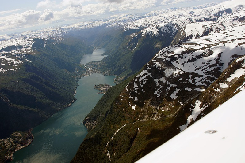 Fjord Hardanger po odletu z ledovce Hardanger-jokulen