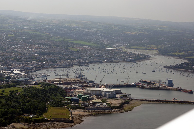 Pohled na Falmouth, pobřeží Cornwall, Anglie