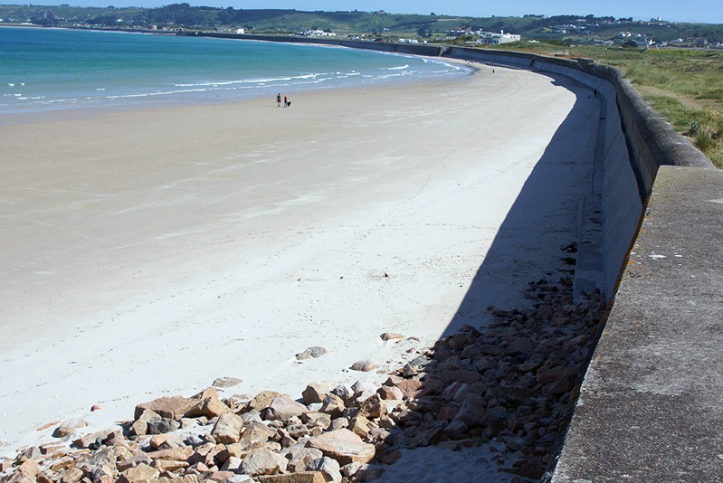 V pravo je Nezávislý ostrov Sark – centrum světového off shore podnikání. Vlevo za ním je ostrůvek Brecqhou, jehož několik obyvatel se snaží o samostatnou státnost nezávislou na “velkém” Sarku. Jsou zde občas vydávány I vlastní poštovní známky a ostrůvek má i svou vlajku. Přelet obou ostrovů je jejich parlamentem zakázán.