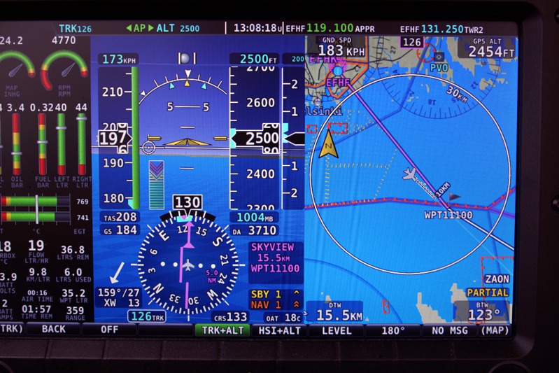 Primární obrazovka těsně před přechodem hranice do Estonska – Finský záliv