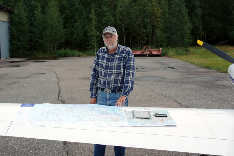 Olaf - Veterán aeroklubu na letišti v Hanko mi pomáhá s přípravou letového plánu