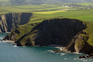 Cornwallu, Bristolský záliv s ostrovem Lundi až do Swansea. Tady
