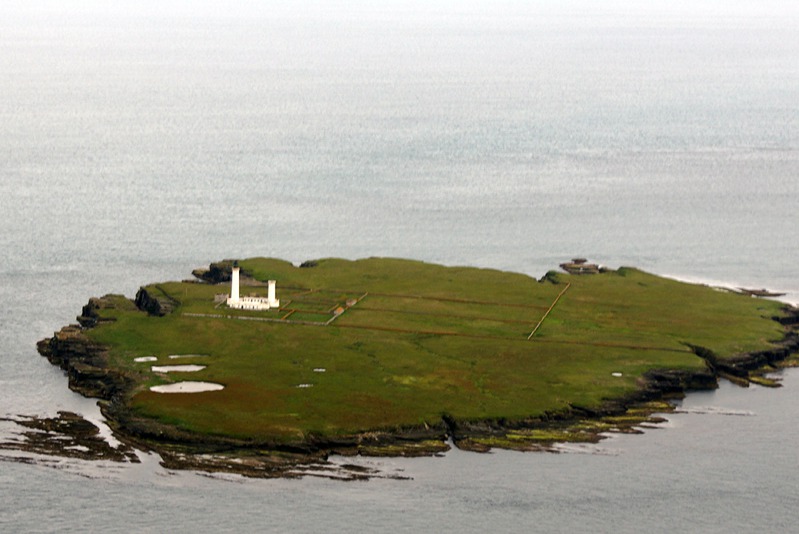 Ostrůvek s majákem Pentland Skerries mezi severo-východním výběžkem Skotska a  Orknejskými ostrovy