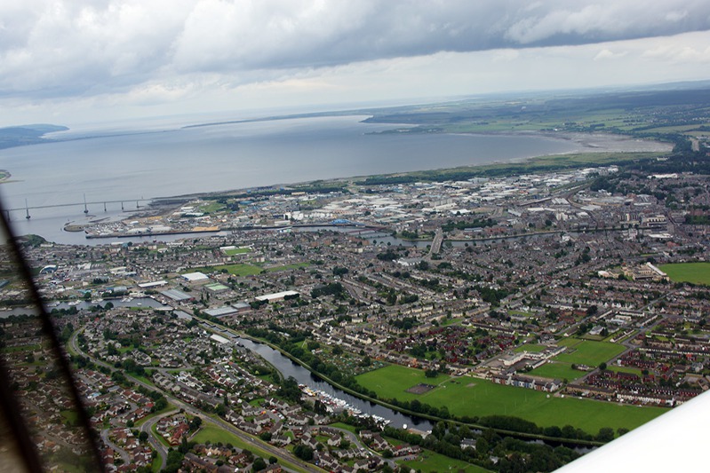 12. Pohled na Loch Ness z jihu. Na jeho severním cípu jsou předměstí Inverness