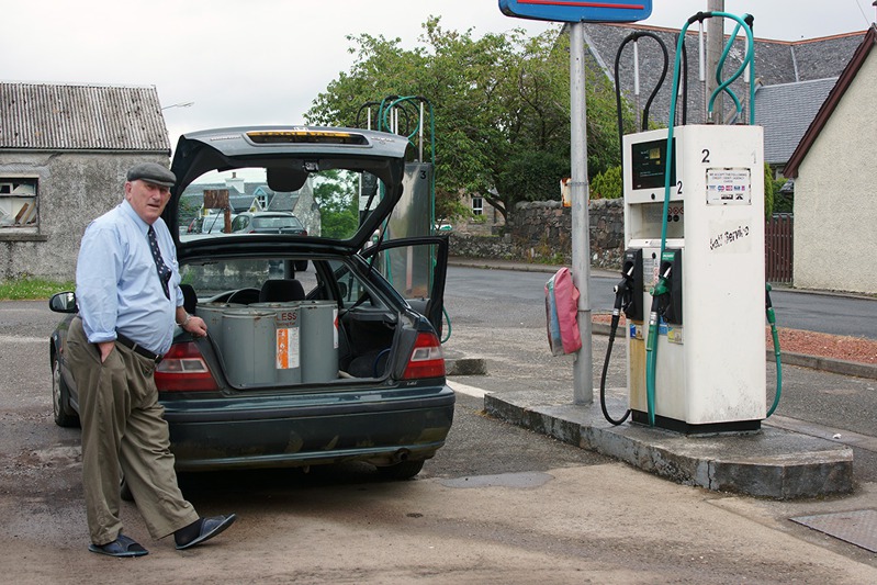 Nakupujeme s Davidem benzín do letadla u místní pumpy.
