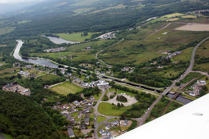 Spojení umělé části Kaledonského kanálu a jezera Loch Ness v městečku Fort Augustus  prostřednictvím zdymadel, která mění výšku plavby v opačném směru než Neptunovo schodiště.   Umělý kanál je 20 metrů nad mořskou hladinou a tedy i cca 20 m nad hladinou jezer včetně Loch   ness, která jsou s mořem propojená.