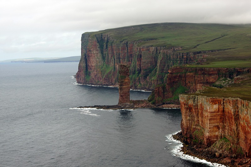 Západní pobřeží ostrova Hoy se slavnou osamělou skálou Old Man of Hoy