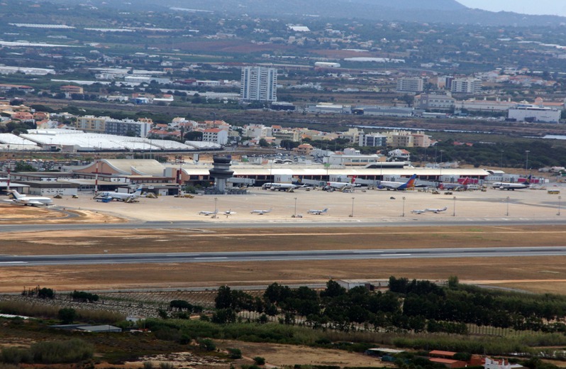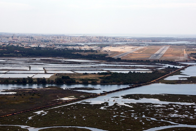 Ranvej letiště Faro při nízkém průletu letištní zónou (CTR) kolem pobřeží