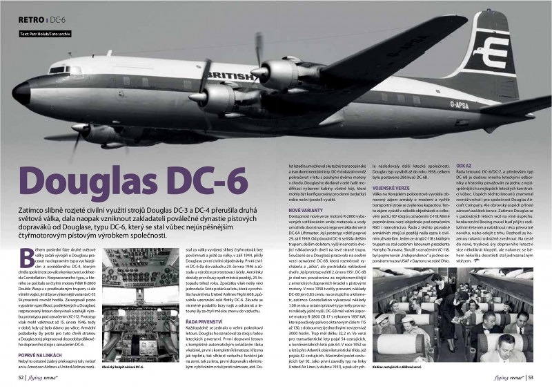 Zatímco slibně rozjeté civilní využití strojů Douglas DC-3 a DC-4 přerušila druhá světová válka, dala naopak vzniknout zakladateli poválečné dynastie pístových dopraváků od Douglase, typu DC-6, který se stal vůbec nejúspěšnějším čtyřmotorovým pístovým výrobkem společnosti.