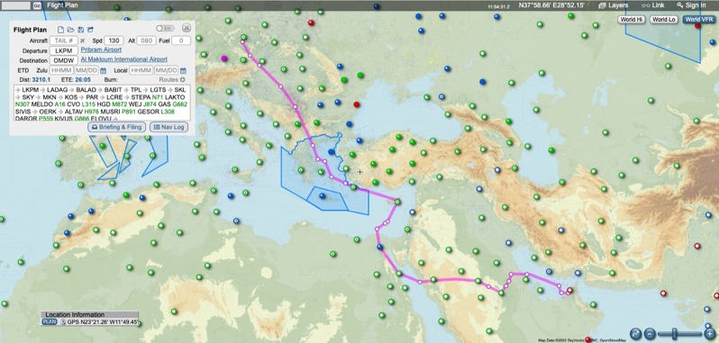 Vlastní let je plánován na 5 dní s jednodenní rezervou, protože z organizačních důvodů, musí být Jirka se Sharkem v Dubaji ve středu 12.11.2025 tak, aby se dostal bez problémů na stánek vystavovatelů, tedy firmy SHARK.AERO s.r.o.